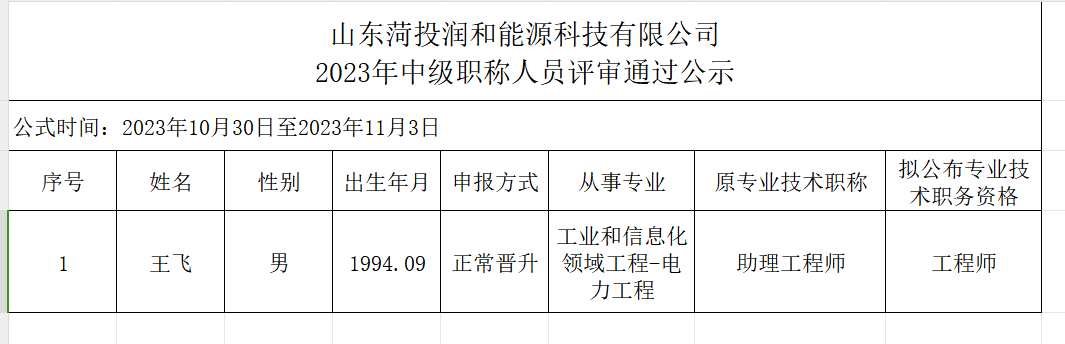 山東菏投潤和能源科技有限公司2023年中級(jí)職稱人員評(píng)審?fù)ㄟ^的公示
